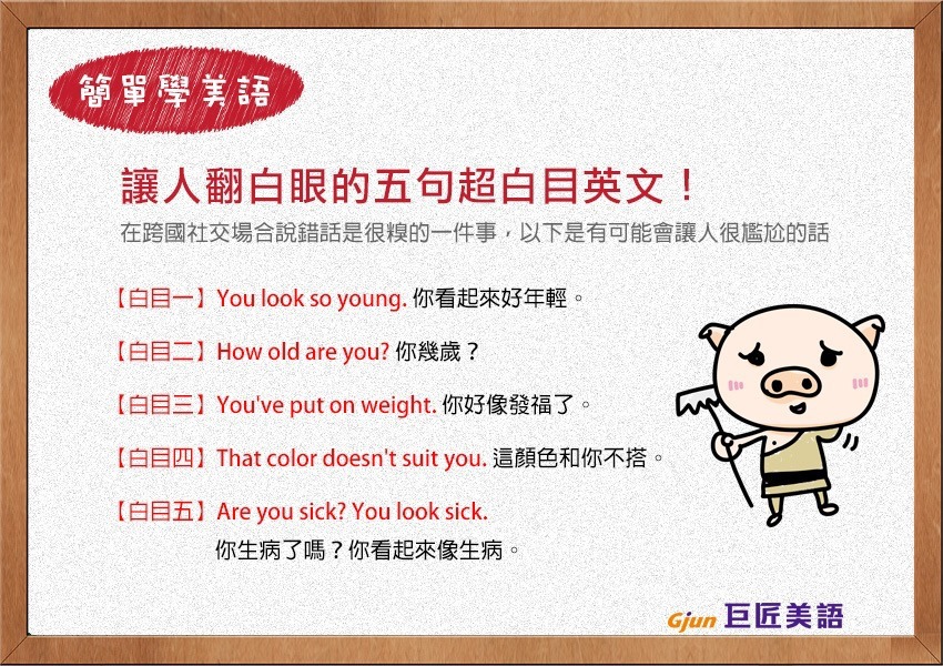 【巨匠美語】學美語教學 讓人翻白眼的超白目英文!!You look so young.讚美別人看起來很年輕也不行!!??