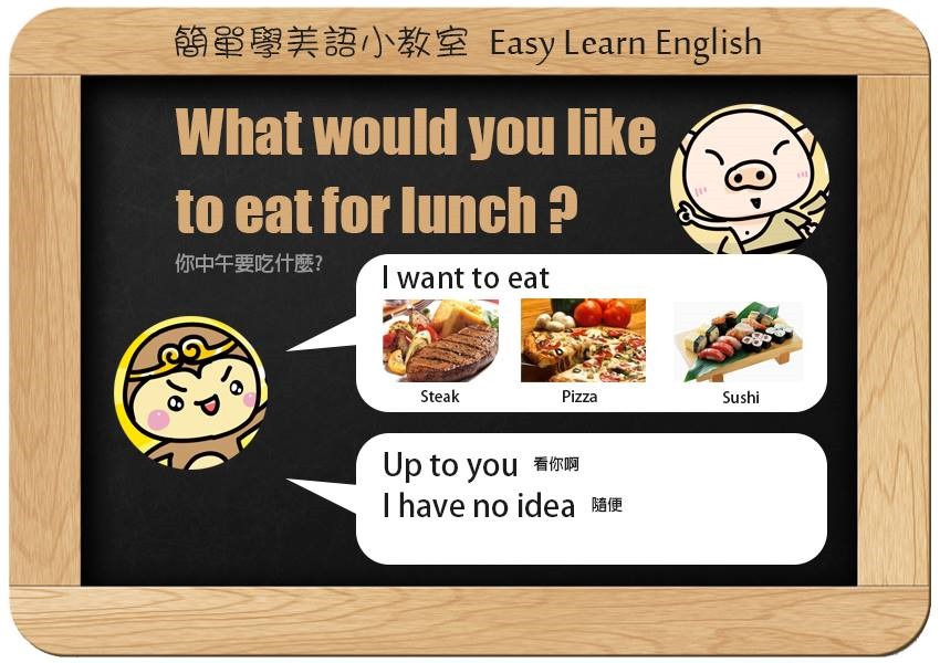 好餓喔大家中午都吃什麼呢?還是沒什麼想法??我們來學學如何對答吧~