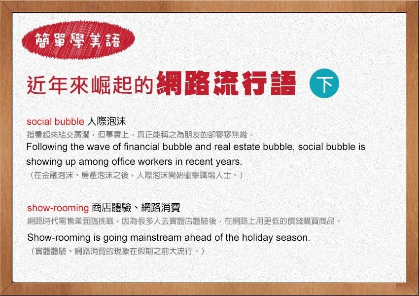 Following the wave of financial bubble and real estate bubble, social bubble is showing up among office workers in recent years.(在金融泡沫、房產泡沫之後,人際泡沫開始衝擊職場人士。)